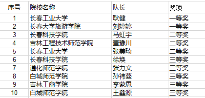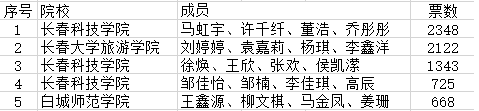 6 | 长春科技学院 | 徐焕 | 62 | 王欣 | 36 | 张欢 | 50 | 侯凯潆 | 58 | 10.3 | 61 | 71.3 |