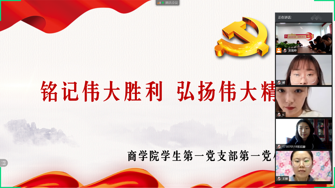 为纪念中国人民志愿军抗美援朝作战70周年,大力弘扬伟大的抗美援朝精神。商学院学生第一、第二党小组于10月29日采用线上与线下结合的方式,在208党建活动室召开学习习近平总书记在北京出席纪念中国人民志愿军抗美援朝出国作战70周年大会并发表重要讲话精神党小组会。