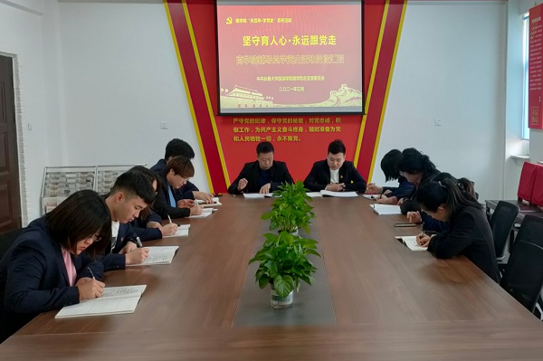 最后,党总支书记李刚强调,要提高政治站位,强化行动自觉,认真贯彻落实学校党委关于开展党史学习教育工作的总要求,围绕要求突出重点学习,做好专题学习,坚持以上率下。提高政治占位,强化责任担当,严格执行标准,推动学习教育深入开展。要调动师生参与的热情,持续营造学习氛围,做到学史明理、学史增信、学史崇德、学史力行,推动党史学习教育走深走实。