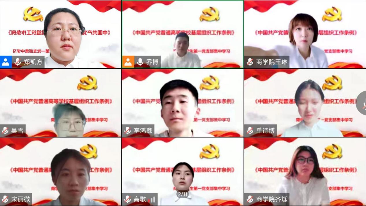 为推动党的建设与高等教育事业发展深度融合,以高质量的党建引领推动学校为党育人、为国育才。6月13日,商学院学生第一党支部借助腾讯会议平台线上开展学习《中国共产党普通高等学校基层组织工作条例》(以下简称《条例》)党日活动。活动由支部书记郑凯方主持,支部全体党员参与活动。