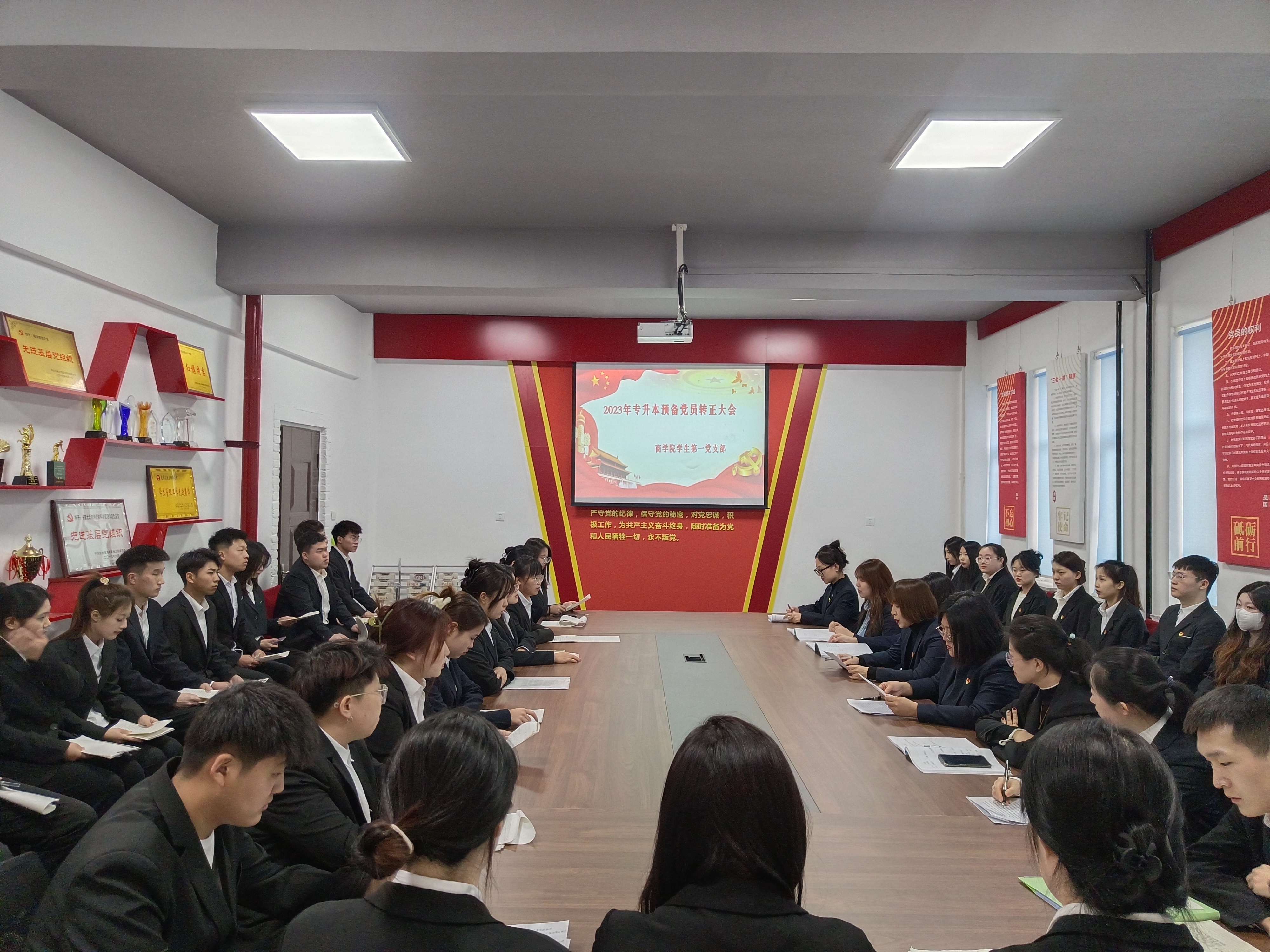 2023年3月14日,应商学院党总支相关工作部署和要求,我支部在党建活动室208举行了预备党员转正大会。本次大会的议题是讨论孙涛等24名同志申请转为正式党员的问题。商学院学生第一党支部正式党员以及预备党员出席了此次会议,本次会议由组织委员王琳同志主持,严格按照组织转正程序进行。