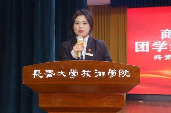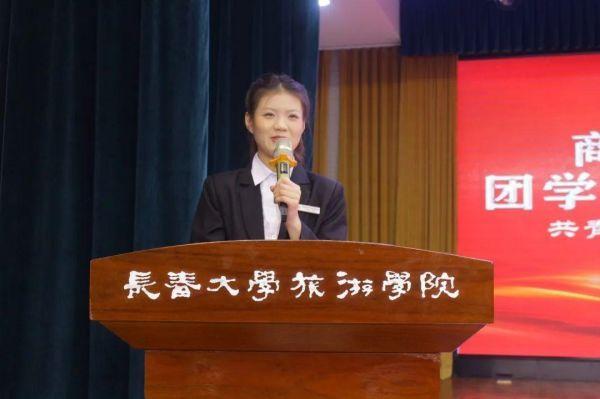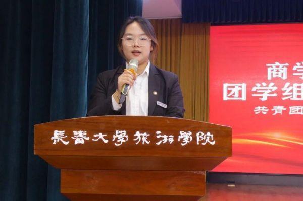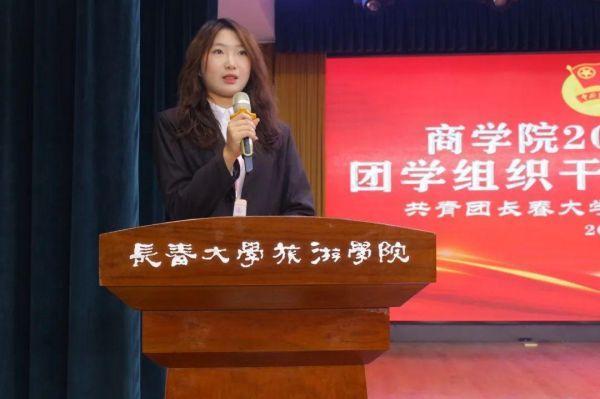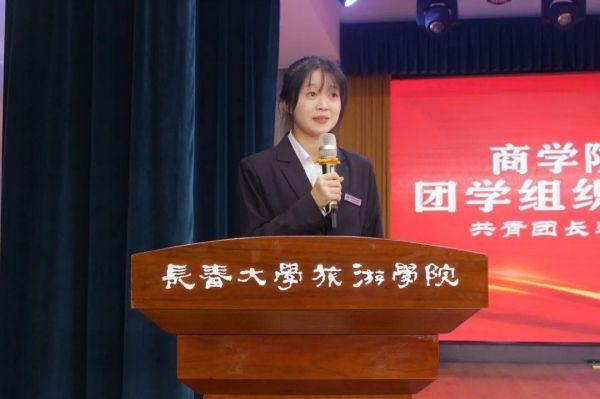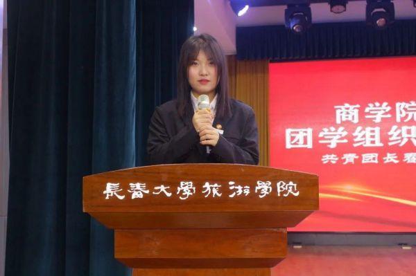 ▲商学院团委书记王琳在大会中致辞