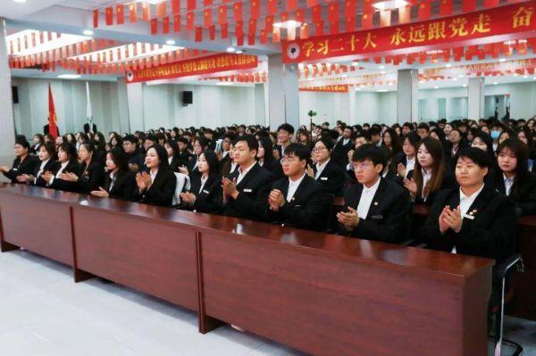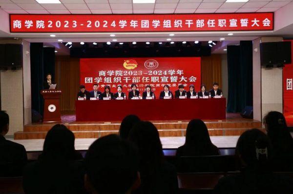 扬帆奋进正当时,砥砺前行谱新篇。为进一步完善我院学生干部队伍建设,进一步高效运转团委的各项工作机制,明确未来工作发展方向,提高学生干部工作实效。11月16日,商学院在大学生活动中心召开2023—2024学年学生干部宣誓大会。商学院团委书记、学生办公室主任王琳,商学院团委副书记、学生办公室副主任刘丹丹出席会议。商学院团委思想引领项目中心、智慧团建项目中心、青年志愿者联合会、新媒体运营中心、大学生文体团、学生会六大学生组织全体学生干部参加了会议。会议由大学生文体团团长侯雨欣主持。
