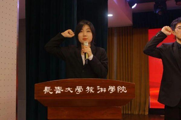 ▲商学院团委秘书长孙思缘宣读《商学院学生干部任职承诺书》