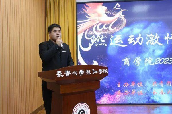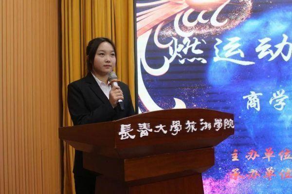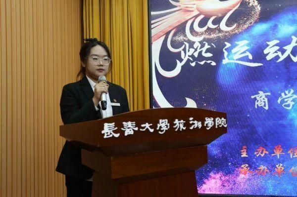 ▲商学院团委秘书长孙思缘宣读《“燃运动激情·绽青春光彩”商学院第一届体育趣味文化节获奖名单》