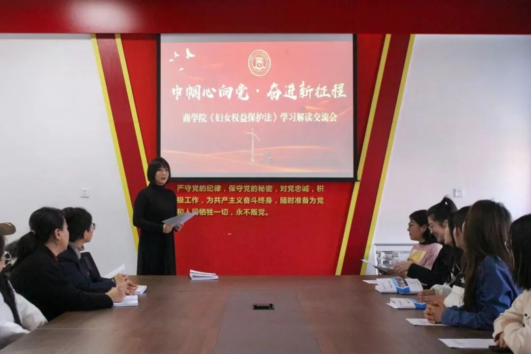 为学习贯彻习近平法治思想,进一步团结带领广大女性在学院事业发展中贡献巾帼力量,同时纪念第114个“三八”国际妇女节。3月8日,商学院组织女教职工学习《中华人民共和国妇女权益保障法》法律法规知识,会议由商学院团委书记王琳主持。