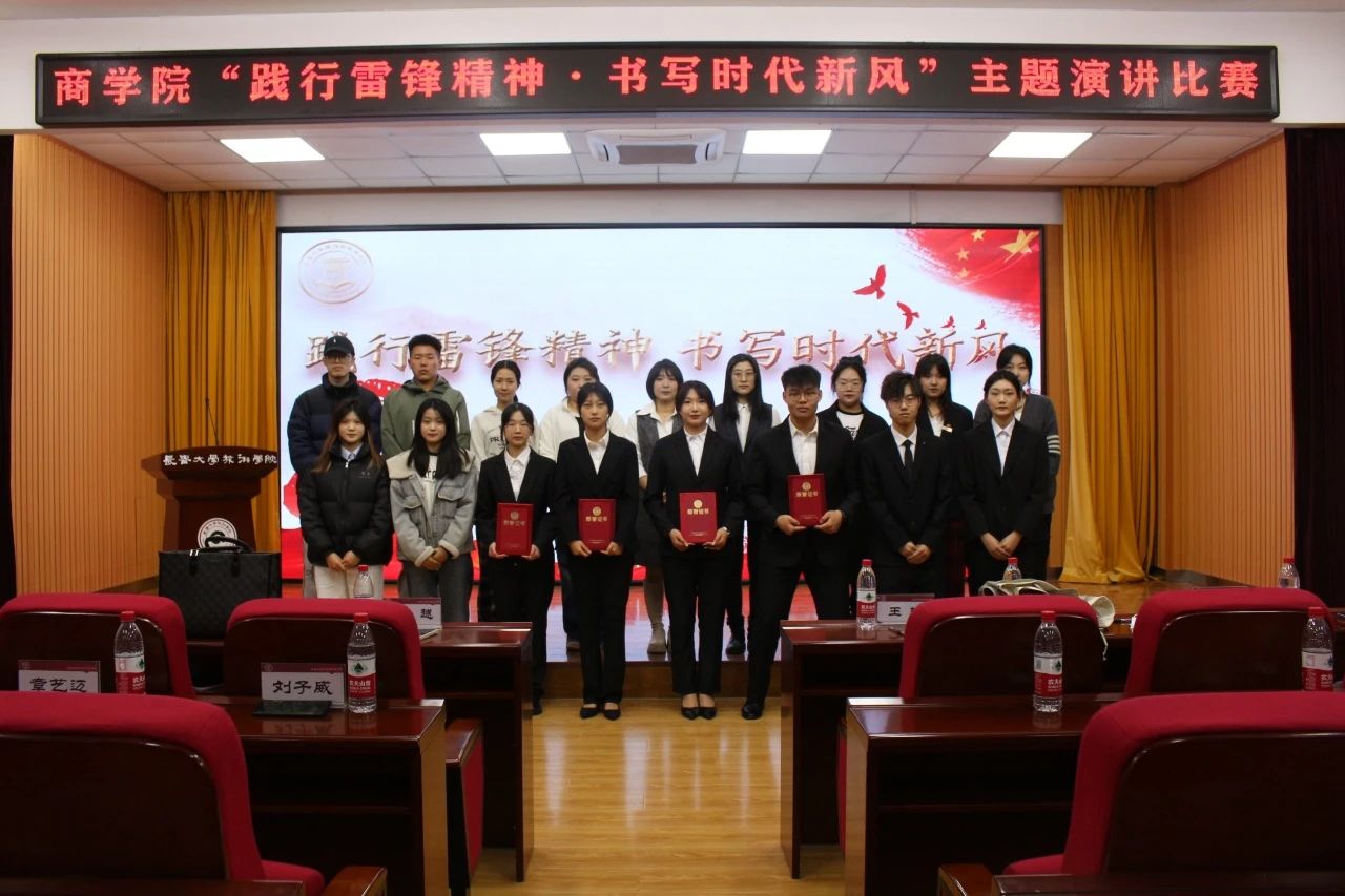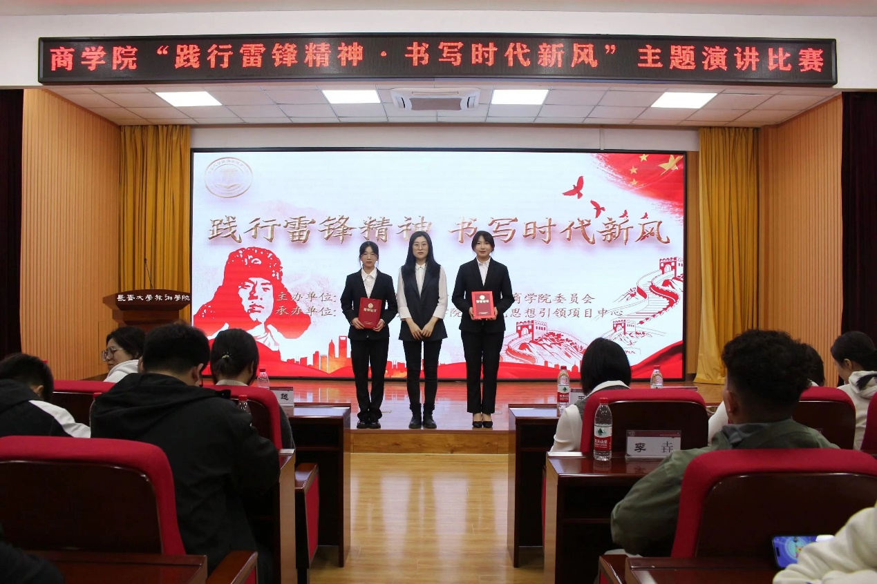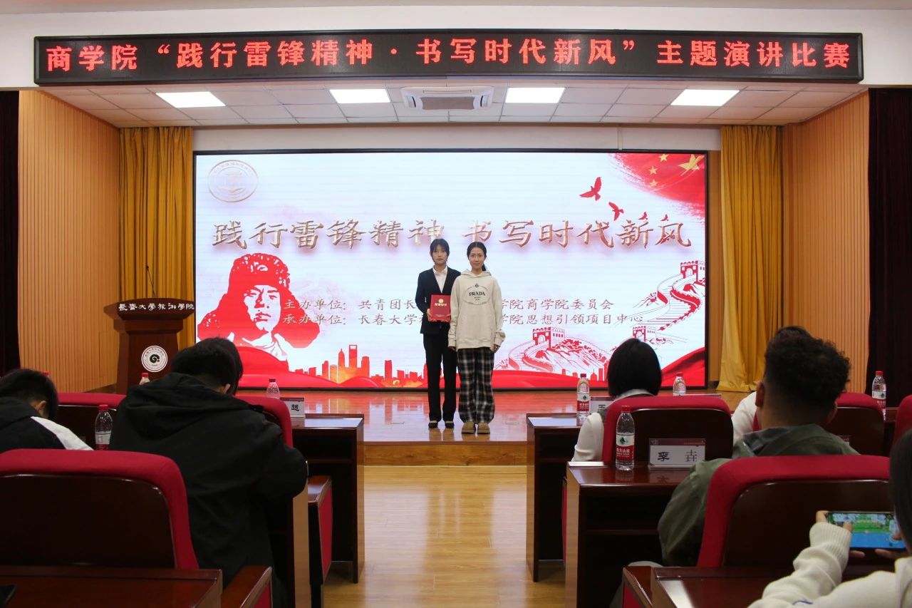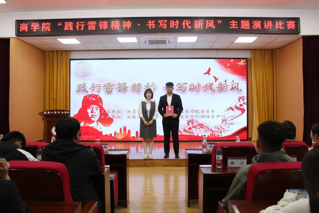 为学习贯彻习近平总书记关于深入开展学雷锋活动的重要指示精神,扎实推进学校“厚德修身”学生素质养成工程,全面提高学生综合素质,进一步弘扬雷锋精神,激发同学们的爱国情怀和社会责任感。3月20日,商学院于教学楼247教室进行“践行雷锋精神,书写时代新风”主题演讲决赛。