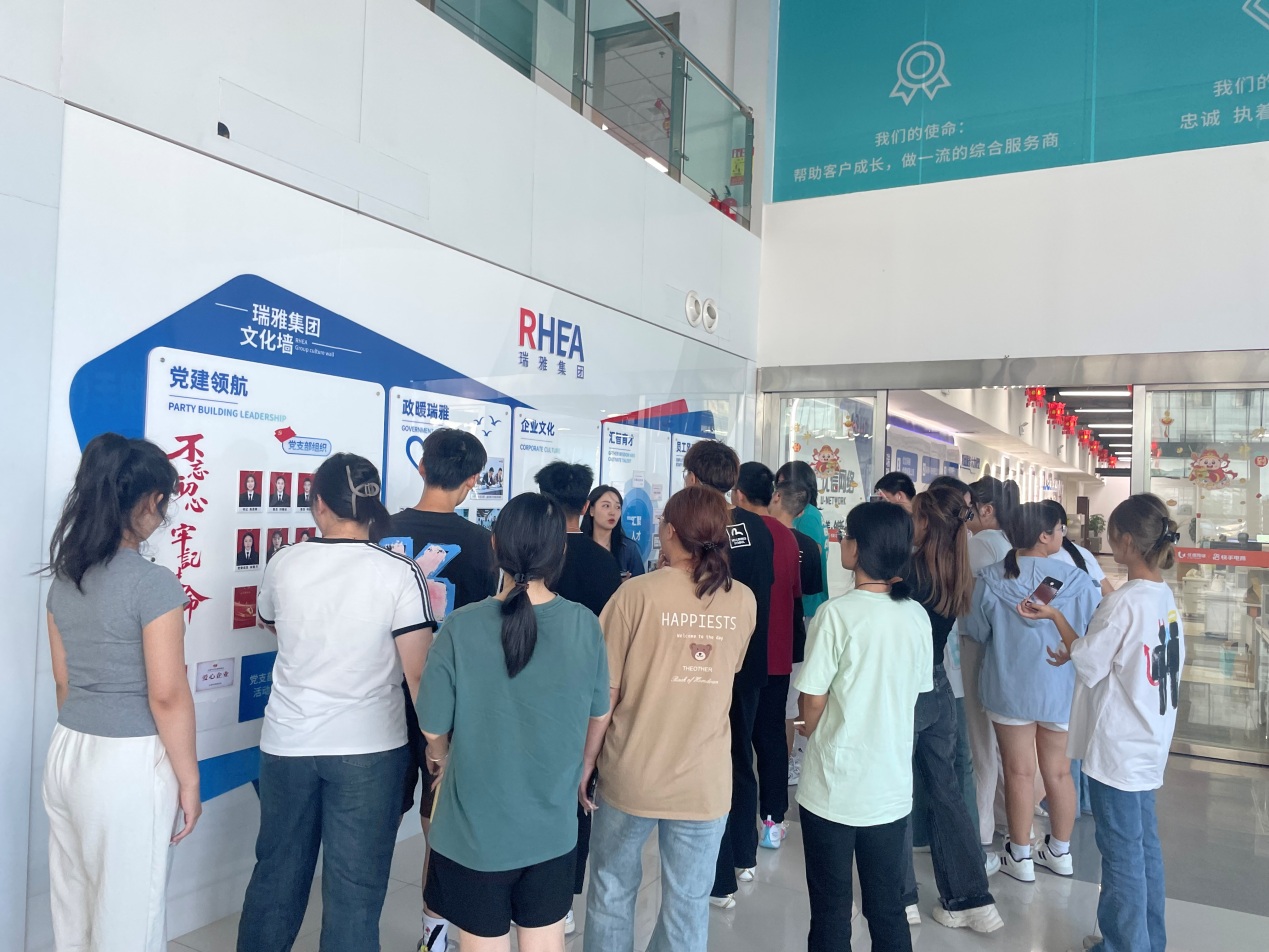 瑞雅集团是一家以传媒贸易为主的专业整合营销商业机构,主营业务有快手电商产业、微博广告代理、补养堂品牌电商运营、抖音全域运营等。在人事经理的带领下,同学们参观了瑞雅集团电商经营工作区域,了解瑞雅集团的公司运营以及核心部门和员工组成。