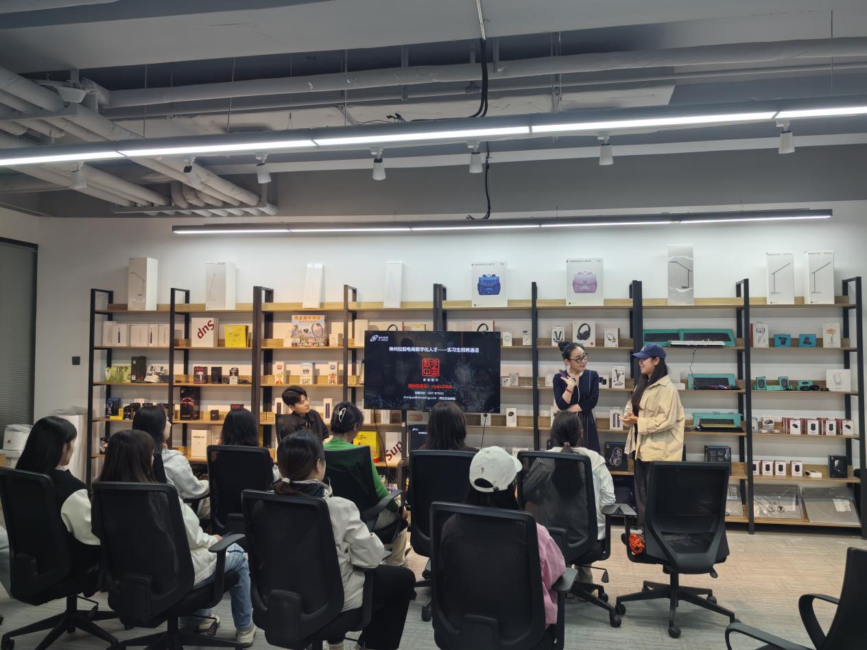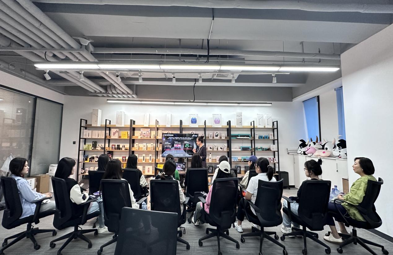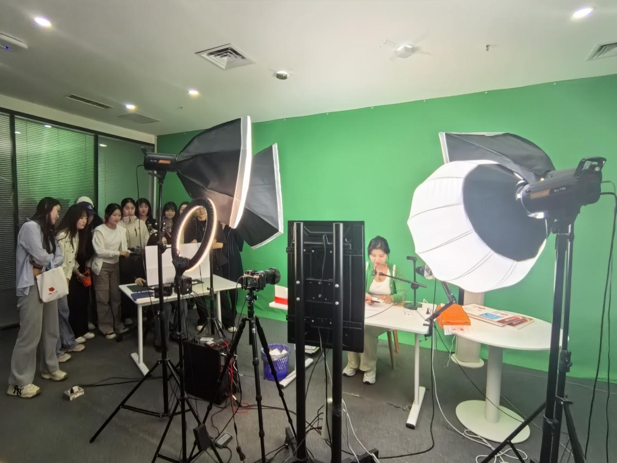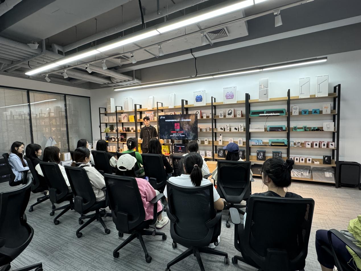 最后,在张希瑶总监的带领下,参观了公司的各职能部门以及电商直播室,同学们在指导下进行了试播活动。
