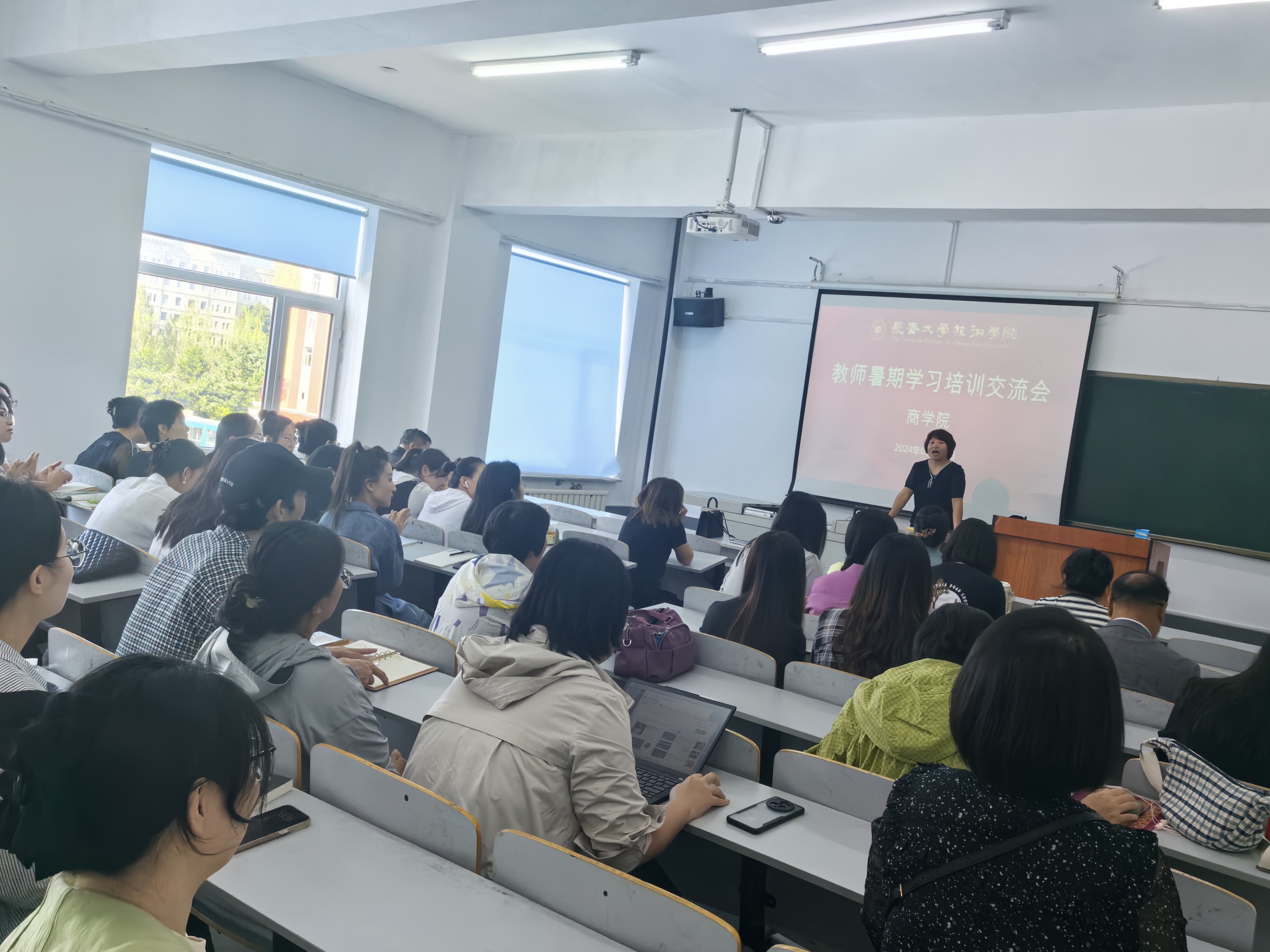 青年教师代表刘秀娟分享了参加暑期教师培训后的心得体会。她表示,此次培训对自身教育教学技能的形成、职业道德的培养和教学水平的提高具有重大影响。她结合自身实际情况,分析目前在教学、科研工作中存在的问题,并提出后续工作的目标与举措。