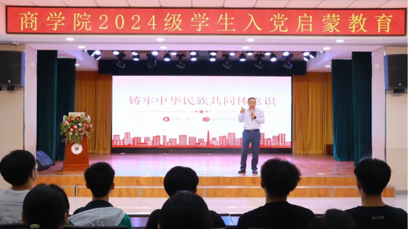“青年是祖国的未来和希望,也是党的未来和希望,国家的发展都得益于一代代青年的努力和奋斗”为加强新生理想信念教育,激发青年学生政治热情,号召新生积极向党组织靠拢,帮助商学院新生们深化对党的认识,正确意识到作为青年学生的使命担当,扣好入党的“第一粒扣子”。商学院党总支于9月12日在大学生活动中心进行入党启蒙教育活动,党总支书记于刚、24级全体辅导员和全体新生参加。