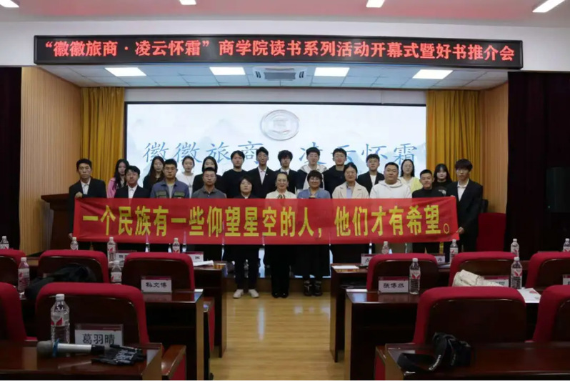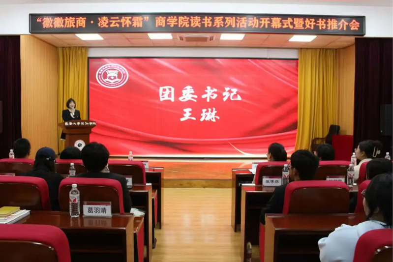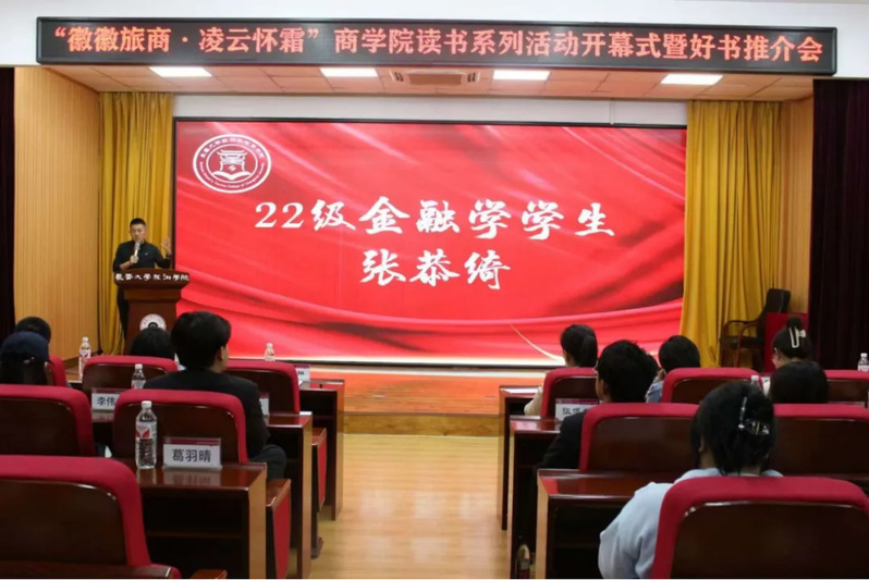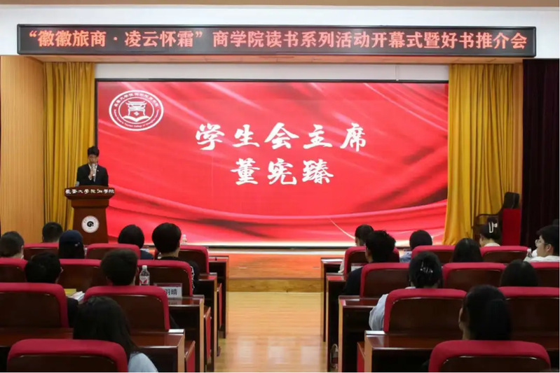 随后,图书馆副馆长卢冬岩宣布开幕,商学院首届“徽徽旅商·凌云怀霜”读书系列活动暨好书推介会正式开始!