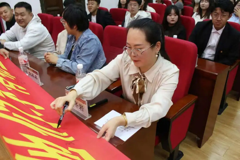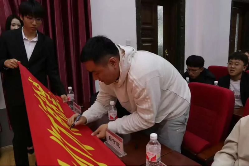 商学院学生会主席董宪臻宣读倡议书并主持好书推介会签字仪式