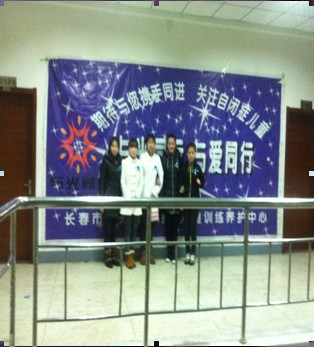 活动主题:“与光同行 与爱同行”关爱自闭症儿童 活动时间:2013年04月02日 活动地点:吉林体育学院 主办单位:心蕊志愿者协会及吉林体育学院 我们通过发放宣传资料和现场咨询等形式,向社会宣传自闭症有关知识,倡导全社会都来认识、理解、关爱和接纳自闭症儿童,及时提供早期干预康复,让他们走出封闭的内心世界,从而更好地融入社会。 开展帮助自闭症儿童志愿活动――这个目前在全社会还算是比较冷门的志愿活动,是希望可以有更多的人可以关注到这群特殊的孩子,可以有更多的社会组织加入到保护和关爱他们的队伍中来,我们想凭借自己弱弱的肩膀为这群孩子支起一片天,即使天空不宽广,她也可以给孩子们一丝阳光的希望。一滴水,只有融入大海才能不干涸;一个人,只有融入社会才能充分展示自我的价值,岁月给我们留下的不仅是成长的印记,更宝贵的是一种精神食粮的凝练。既然我们选择了志愿者这个群体,就一定会坚持履行好志愿者的职责和义务,让我们的志愿精神真正地发光发热,让我们的活动初衷真正得到体现。我们正值青春年少,在这个充满了色彩和梦想的年龄阶段,我们将会怀着一颗感恩的心在志愿服务的道路上奉献我们的青春和力量,作为青年志愿者,爱心、热情、知识将是我们标识符,我们相信:在从事志愿服务的道路上,我们会因为自己的付出和努力走出一条越来越宽广、越来越精彩的道路;我们也相信:因为我们这股小小力量的汇聚,一定会给整个社会的志愿服务活动注入更新鲜的血液,带动更多的人加入到志愿服务的队伍中来。