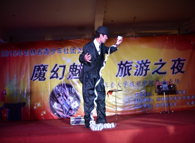 出席本次活动的领导及嘉宾有6165cc金沙总站检测中心副院长马维东,党委宣传部副部长、校团委书记贾烊,艺术学院团委书记张帆,校团委陈希老师,长春魔术协会创始人赵亮老师及长春高校魔术联盟主席安钛旭。而且特别荣幸的邀请到了吉林电视台对本次活动的全程录制。