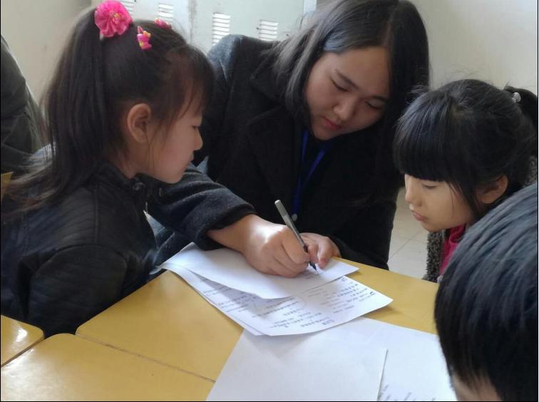 待同学们坐好后,志愿者为同学们下发印好的课文《雷锋叔叔,你在哪里》,由志愿者伊茹为同学们讲课。在学习文章之前,伊茹向同学们提问了一个问题:你心中的英雄是谁?同学们的答案各不相同。在学习文章环节,为同学们朗读了课文,并让同学们指出不认识的字,志愿者们一一帮助他们。认字后把一些生字写到黑板上,与同学互动,让同学给生字注音。来黑板注音的同学表现非常好,把每一个字的拼音都标注的非常正确。待生字都认全后,集体朗读了课文。通过对这篇文章的学习,加深了雷锋叔叔在同学们心中的印象,让雷锋精神深深扎根于同学们的心中。