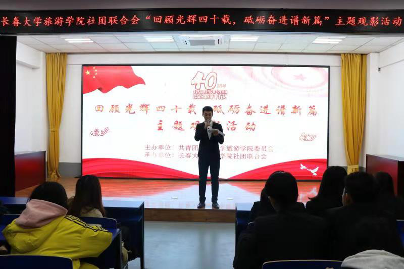 为庆祝改革开放40周年,纪念改革开放40周年风云变化,2018年12月12日16:30在教学楼247报告厅举办了以“回顾光辉四十年,砥砺奋进谱新篇”为主题的主题观影活动,各学院共200余名学生干部参与了本次主题观影活动。