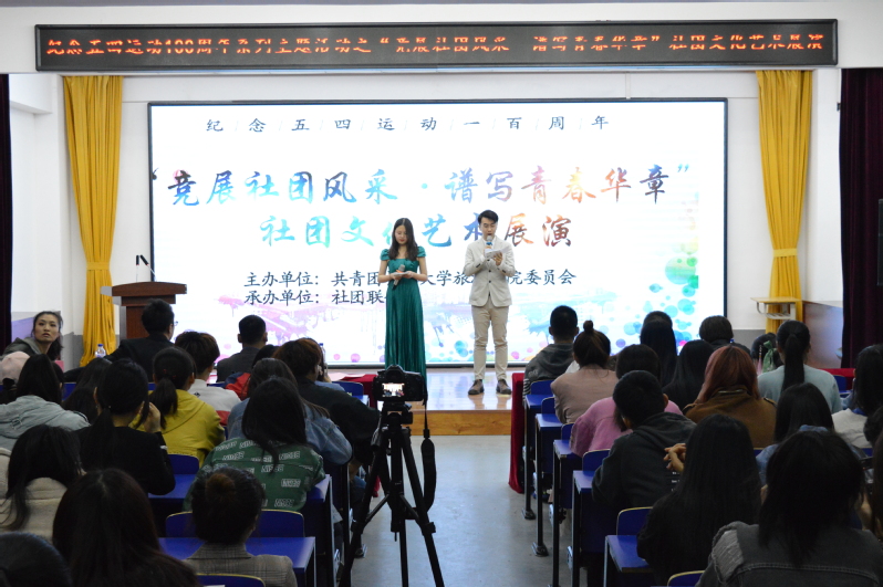 为纪念五四青年爱国运动100周年,深入实施社会主义核心价值观培育计划,广泛开展各类青年爱国主义教育活动,4月22日,校团委在筑梦报告厅举办“竞展社团风采·谱写青春华章”社团文化艺术展演活动。