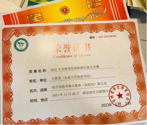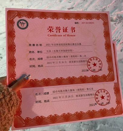 社团成立至今,在指导老师的悉心培养和社团成员的不懈努力下,斩获了2015年长春高校联盟dance of young 总决赛冠军、2015年东北高校联盟秋季赛亚军、2015长春街舞争霸赛团长大赛冠军、2015吉林省高校联盟吉林医药学院站breaking组冠军、2015长春街舞争霸赛 girlstyle冠军、2020吉林省校园街舞比赛(长春站)大齐舞第七名、2021吉林省校园街舞比赛总决赛小齐舞亚军、2021吉林省校园街舞比赛总决赛大齐舞第五名等二十多项奖项。