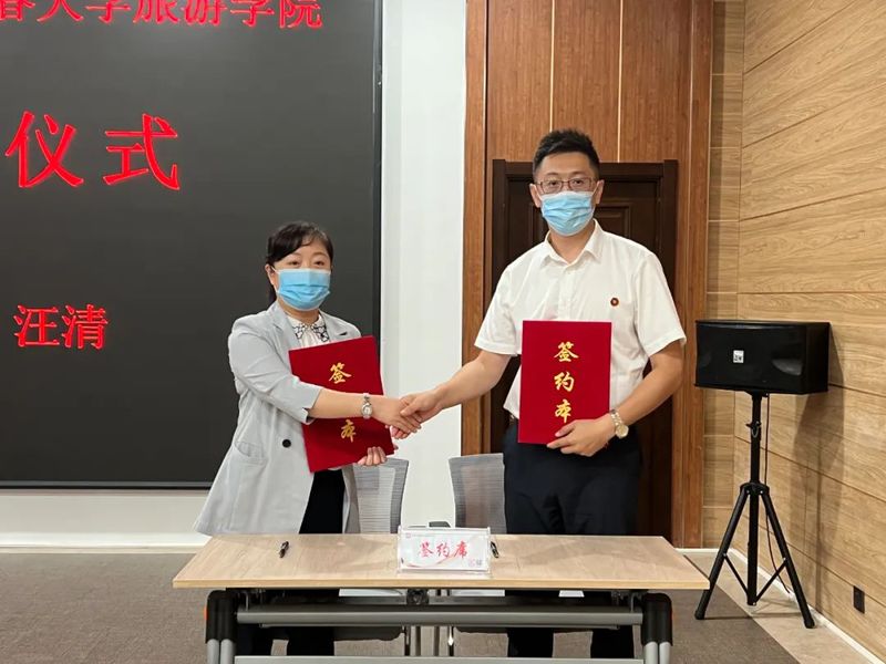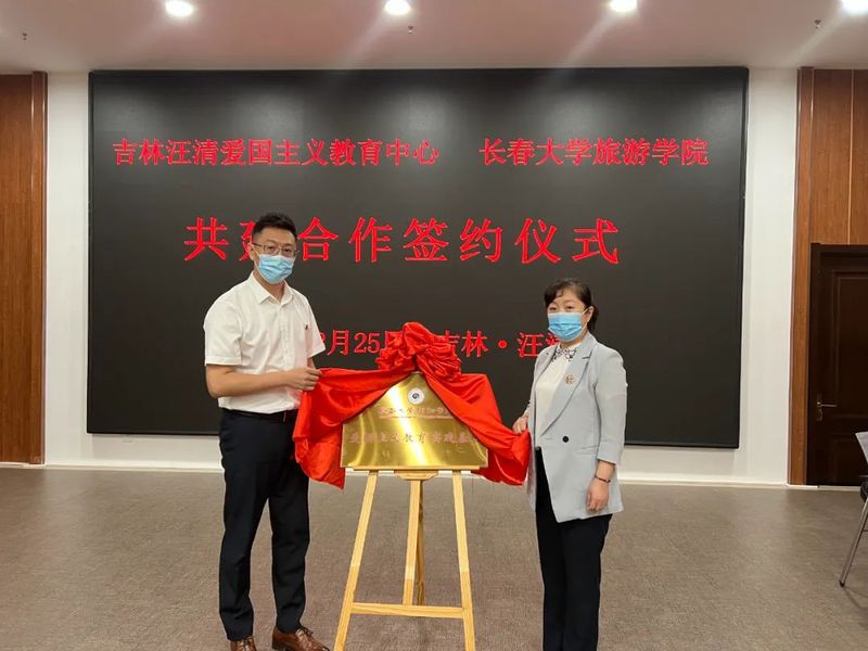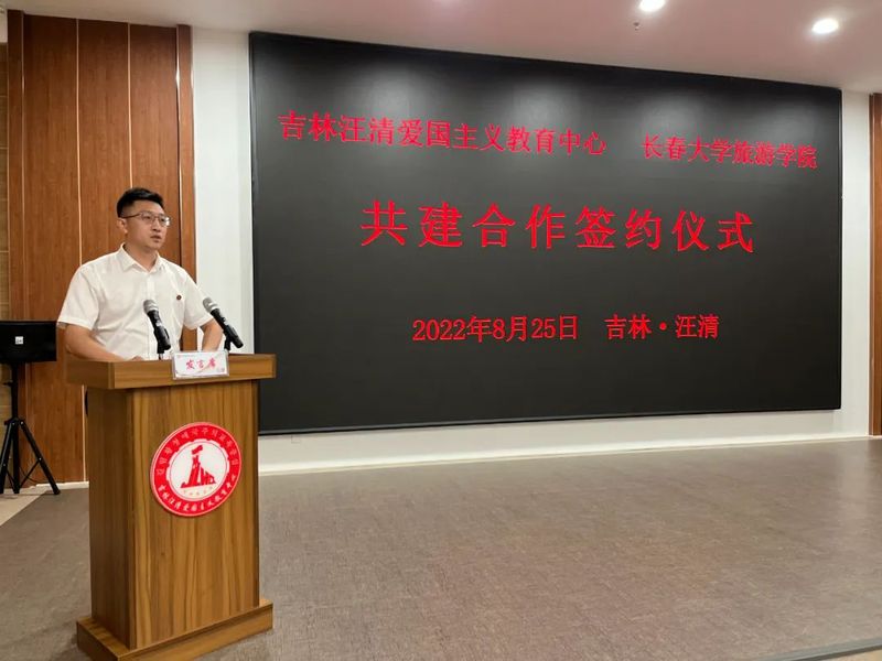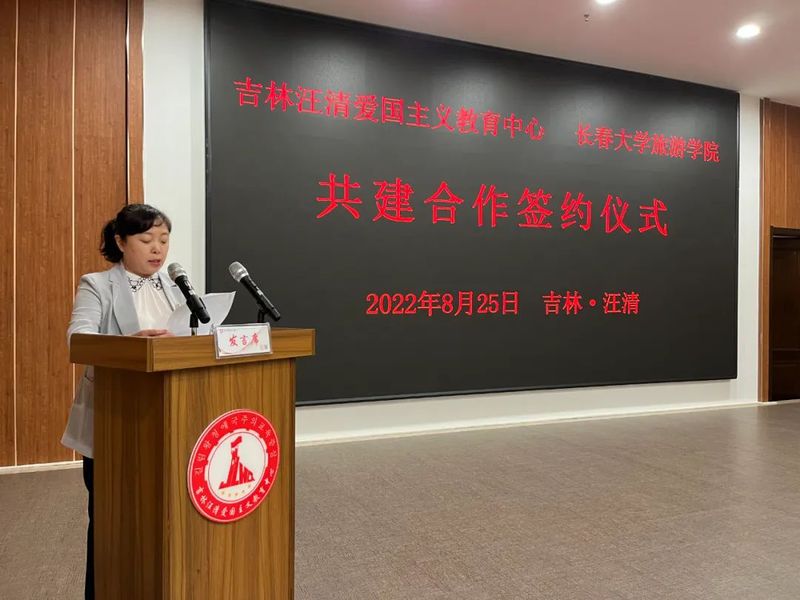 吉林汪清爱国主义教育中心副主任方丽红、研发部部长宋玉斌、外宣联络部副部长张颖,学校团委书记张帆,旅游文化学院党总支书记姜欣、团委书记张锦华出席签约仪式。仪式由张颖主持。