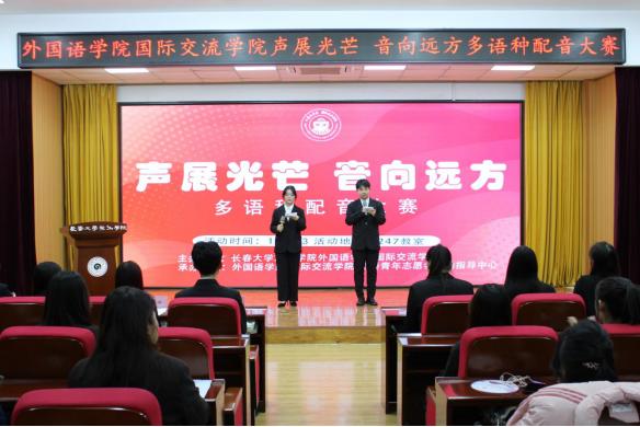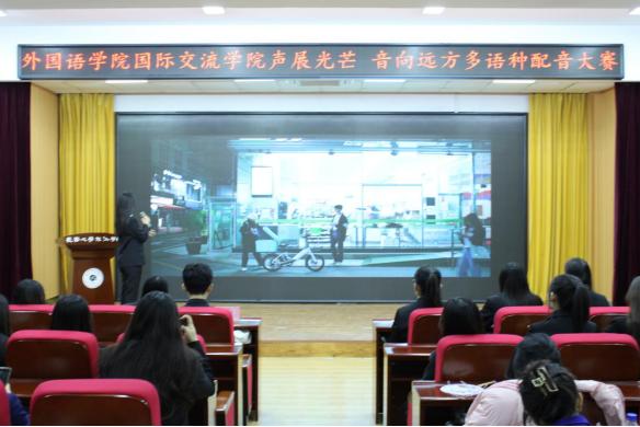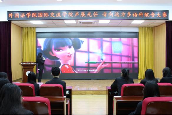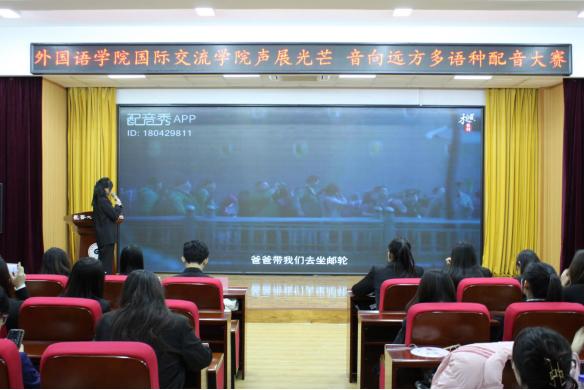 为进一步促进语言文化交流,激发学生学习外语的兴趣,提高学生的口语表达能力,营造浓厚的外语学习氛围,12月3日,外国语学院、国际交流学院于筑梦报告厅举办“‘声’展光芒,‘音’向远方”多语种配音大赛决赛。大赛由学院团委学生副书记牛远哲、许可,学生会轮值主席王一涵,团委学生秘书长郭上瑜、肖志丽,办公室主任李晨曦担任评委。