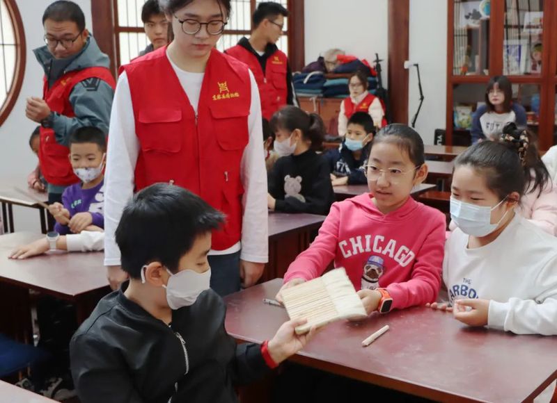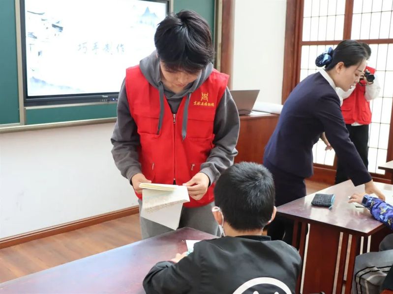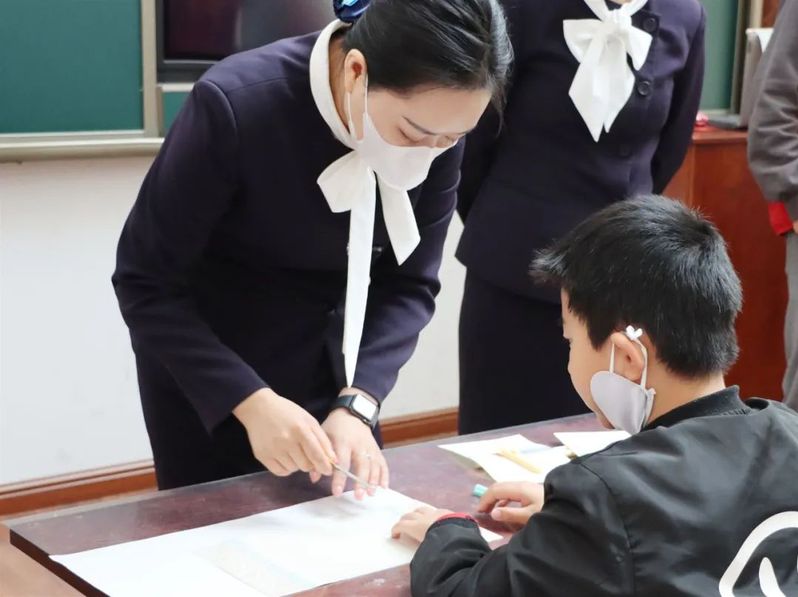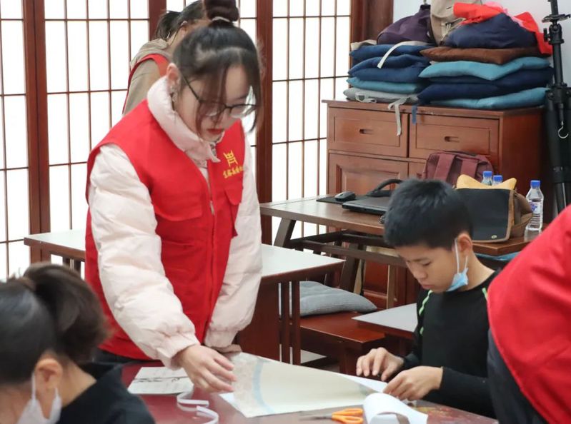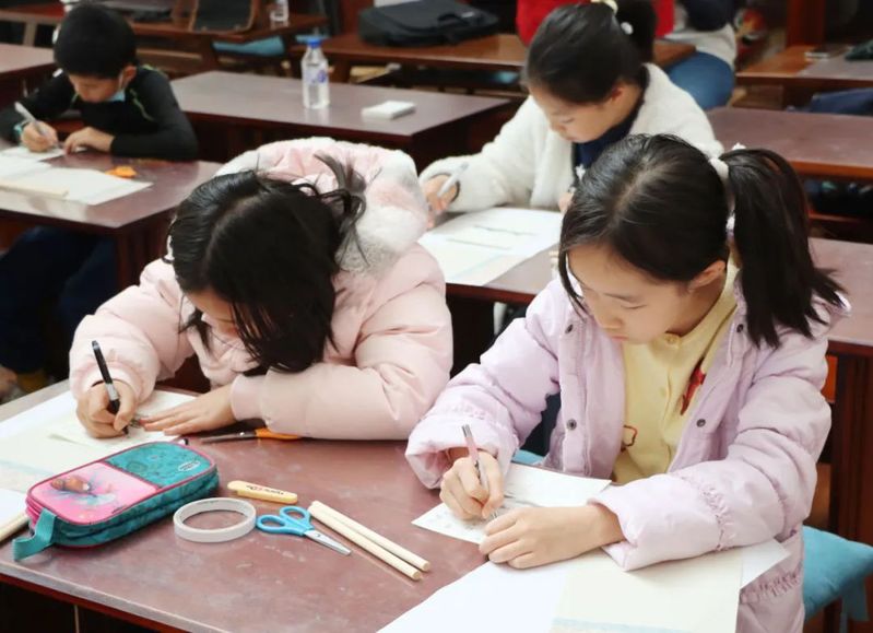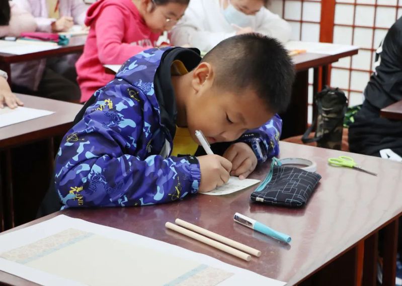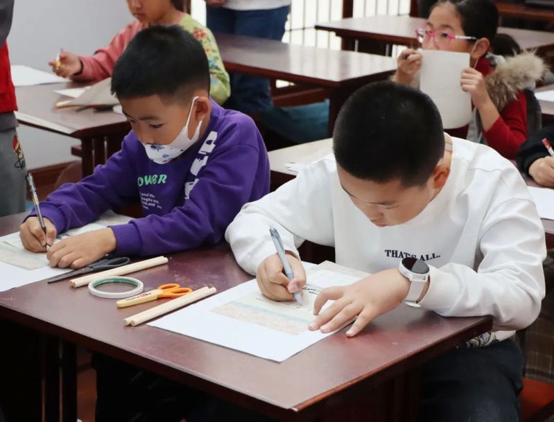 文文老师向我们展示了自己制作的画轴,接下来,同学们要利用手中的备品,进行制作体验啦~首先,我们要进行古诗描写。