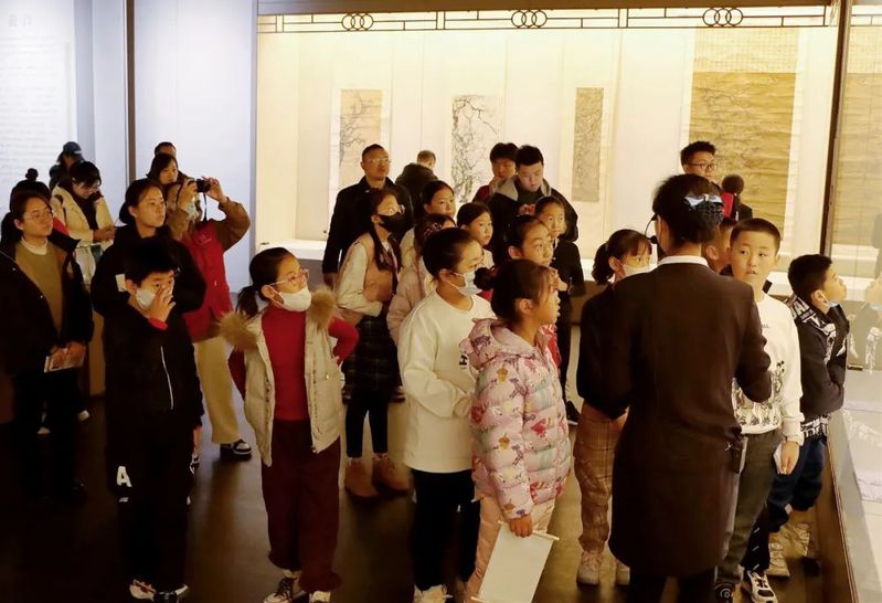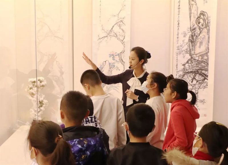 制作完毕, 同学们跟随轶涵老师来到了“君子之风”展厅,从老师的解读中,欣赏精美的画作,感受梅兰竹菊的品质。同时也让同学们切身感受到中华民族不屈不挠,奋勇当先,自强不息的精神感染力和推动力,弘扬正气,推动中华优秀传统文化创造性转化和创新性发展。