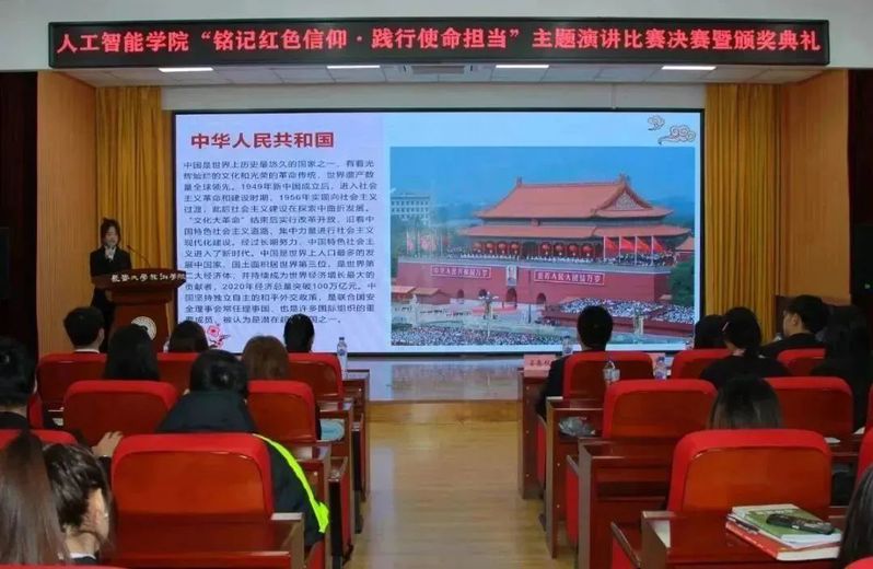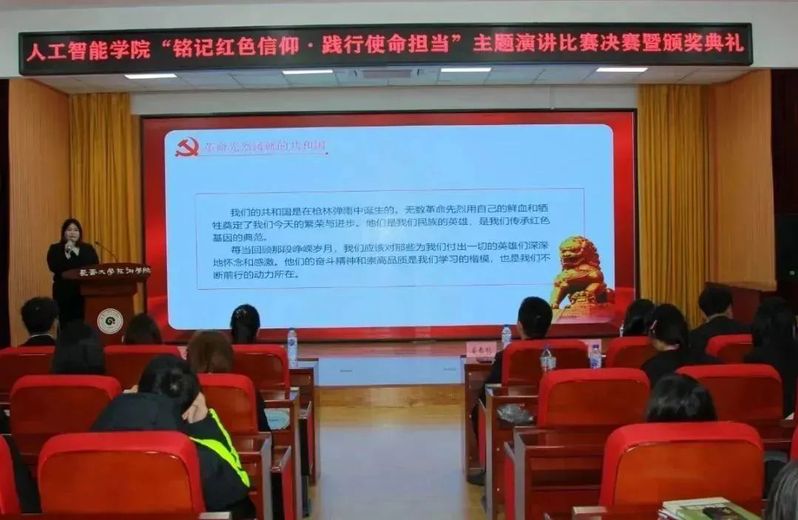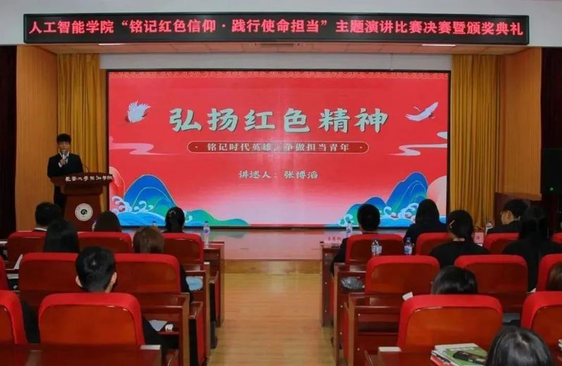 为深入学习贯彻习近平新时代中国特色社会主义思想与党的二十大精神,营造浓厚的学习氛围,组织、教育在校学生弘扬红色文化、传承革命精神,不断引领学生增强迈向新时代、开展新征程的使命感和责任感。人工智能学院于11月21日12:00在筑梦报告厅247举办了“铭记红色信仰·践行使命担当”主题演讲比赛决赛。莅临本次活动的嘉宾有人工智能学院团委书记姜春秋、辅导员王筱惠、张博宇、于欢以及人工智能学院学团组织全体主席团成员。