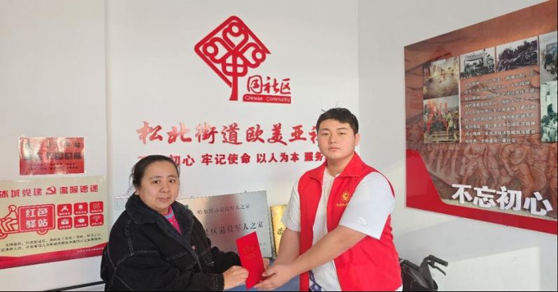 我是来自工学院2023级工程管理专业的何其远,今年寒假,参加了黑龙江省哈尔滨市大学生“返家乡”社会实践活动,在松北街道欧美亚社区义务担任红色长廊讲解员,主要负责讲解大庆精神、铁人精神并引导居民参观社区红色长廊,为其讲解其中精神内核。