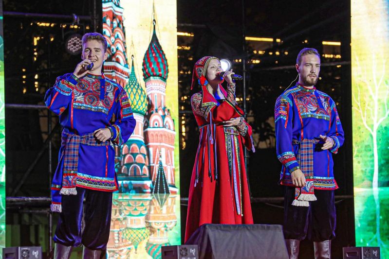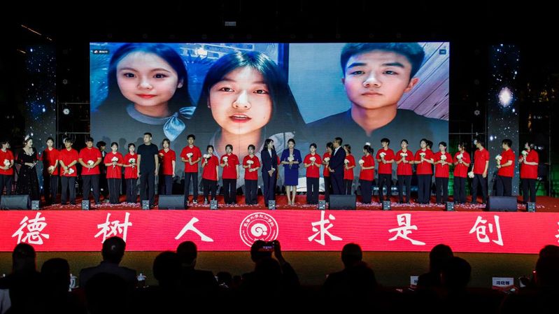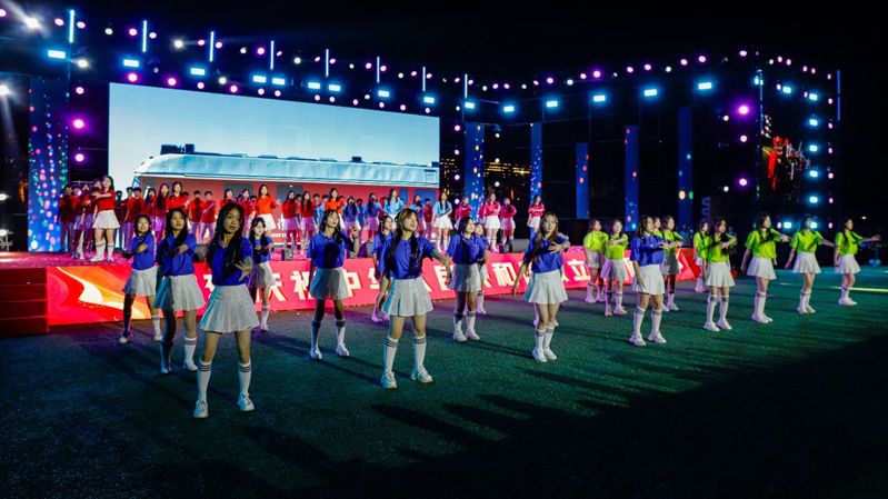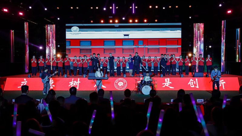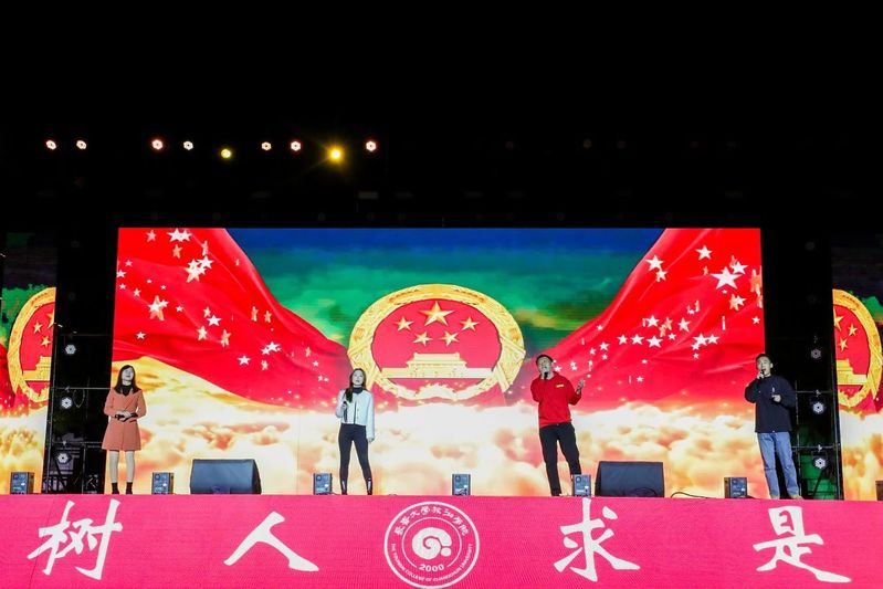 上合专项实训实验班同学带来的精彩合唱《鲜花》,充分展示了他们的实习、实践成效。随后,校友代表、俄罗斯交流生和在“东北亚长旅号”上提供专项服务的优秀学生代表也通过现场表演和视频连线的方式加入晚会,形成了场内外共同欢唱的青春交响。
