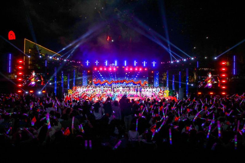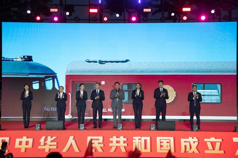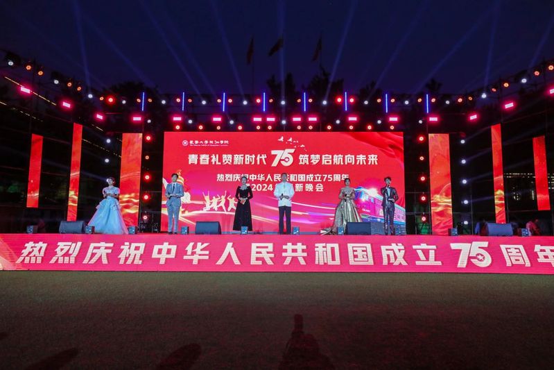 在中华人民共和国成立75周年之际,为共同祝福伟大祖国生日快乐、繁荣昌盛,9月29日晚,学校“青春礼赞新时代,筑梦启航向未来”庆祝中华人民共和国成立75周年暨2024年迎新晚会在运动场隆重举行。中国—上海合作组织经贸交流中心副主任、吉林省东北亚铁路集团股份有限公司总裁、学校副董事长张海涛,校长刘耀辉,党委书记范琳琳及学校领导班子成员乘坐“东北亚长旅号”抵达现场,与各学院党政负责人、各部门负责人、全体辅导员以及2024级全体新生4000余人齐聚一堂,共赴这场又暖又燃的青春盛会。“东北亚长旅号”旅游观光班列运营团队作为特邀嘉宾共同观看晚会。