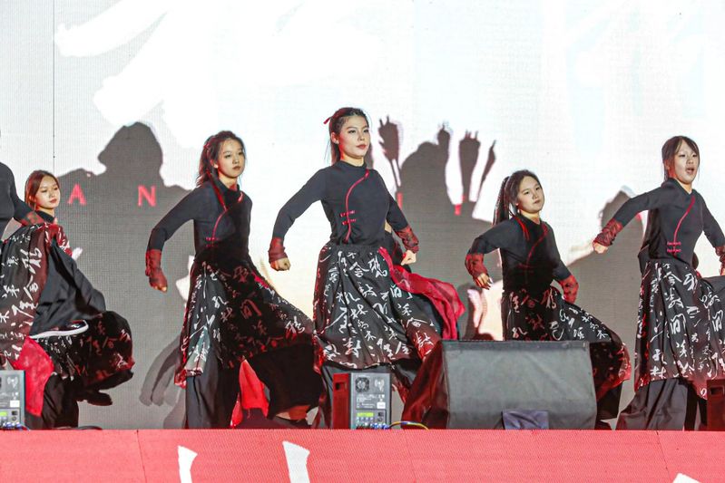 在欢快的鼓点声中,《醒狮》栩栩如生,国粹表演变脸、喷火展示了中国传统文化的魅力与风采,激发了青年学子对传统文化的热爱与传承之心。在新中国成立75周年的光辉时刻,歌曲《我和我的祖国》像是一条穿越时空的纽带,将我们与为国家独立、民族解放而英勇斗争的前辈们紧密相连,更如同一面鲜艳的旗帜,引领着我们前行,警醒我们铭记历史、缅怀先烈。