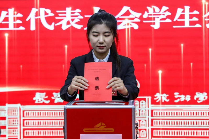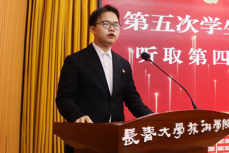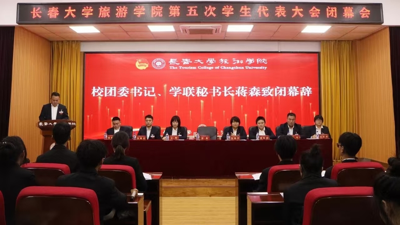 闭幕会上,蒋森致闭幕辞。中国共青团团歌回荡在会场上方,伴随着这激昂的旋律,学校第五次学生代表大会圆满落幕。