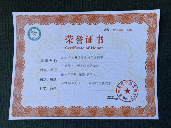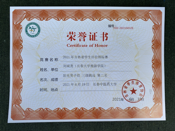 喜报:金沙官网学子在2021年吉林省学生田径锦标赛中喜获佳绩