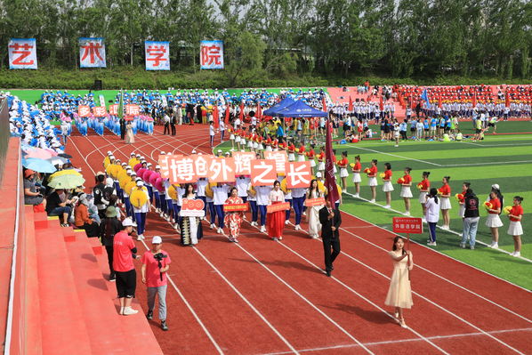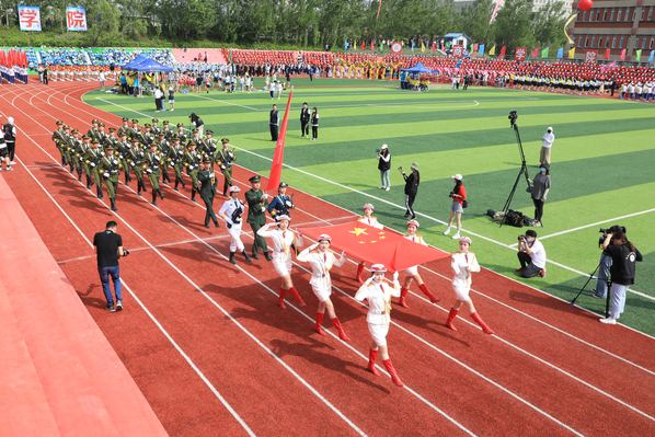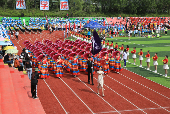 8时30分,伴着激昂的乐声,国旗护卫队成员、刀旗方阵、花束方阵、教职工方阵、各学院运动员方阵依次入场。主席台和看台上的观众为各方阵鼓掌加油。整齐的步伐、统一的着装、响亮的口号,充分展现出长旅师生积极向上、拼搏奋进的风采。