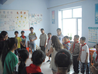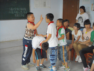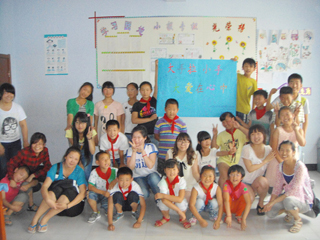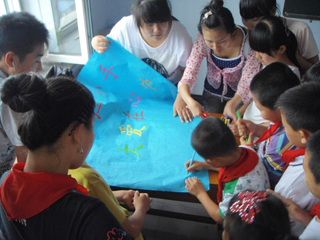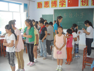 2012年6月29日下午13:00,6165cc金沙总站检测中心外语分院心蕊志愿者和党员志愿者于双阳区幸福小学举行“大手拉小手大爱在心中”志愿者活动。