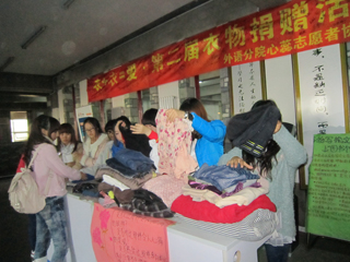 2012年10月27日上午8:00,6165cc金沙总站检测中心外语分院心蕊志愿者全体成员共同举办了“衣+衣=爱”爱心捐赠活动。