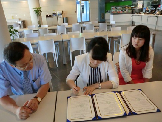 图1-1 于芳董事长签署与南首尔大学的教育合作协议