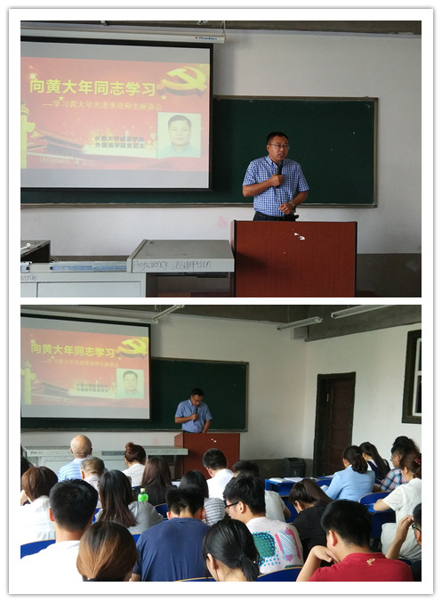 为贯彻习近平总书记重要指示、贯彻落实校党委开展向黄大年同志学习的活动要求,深入学习黄大年同志热爱祖国、恪尽职守的伟大情怀。学院党总支于6月26日召开了“学习黄大年同志先进事迹”师生座谈会。参加本次座谈会的人员有外国语学院、国际交流学院领导班子成员、全体教师、全体党员、学团干部及各班级学生代表。