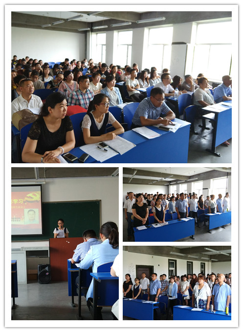 伴随着庄严的国歌,学院党总支组织员孙野介绍了黄大年同志的先进事迹。通过孙野的介绍大家了解到黄大年同志是新时期归国留学人员的先进楷模,是高校教育工作者教书育人的杰出榜样,是践行社会主义核心价值观的优秀代表。随后,与会人员观看了黄大年先进事迹宣传片《大年》,黄大年同志的事迹撼动着全体师生的心,大家深受触动,热泪盈眶。