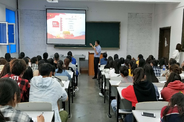 为深入学习习近平新时代中国特色社会主义思想和十九大精神,全面提升新生的政治思想素质,深化新生对中国共产党的正确认识,端正入党动机,坚定加入中国共产党的执着追求,9月17日、18日我院党总支书记于刚为外国语学院、国际交流学院265名新生做入党启蒙教育专题报告。学生党支部书记李姗、组织委员孙野和在校生党员共同参加了报告会。