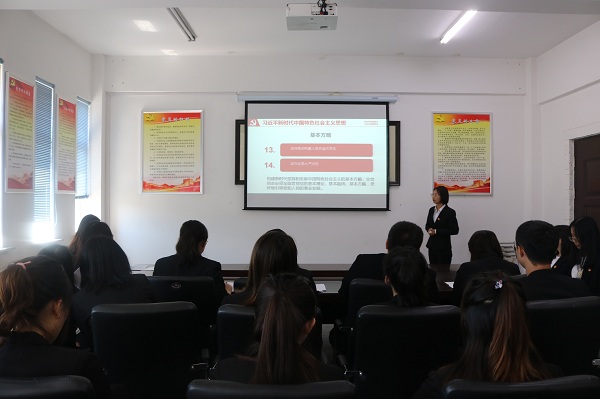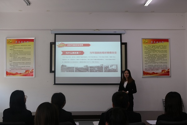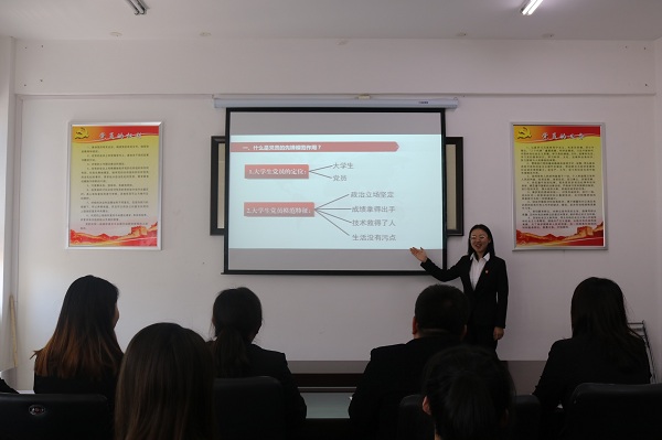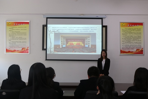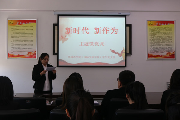 在中国共产党建党98周年之际,为深入学习贯彻习近平新时代中国特色社会主义思想和十九大精神,扎实推进党建引领项目建设,创新党员教育形式,增强党员教育实效,切实提高学生党员理论水平、党性修养和实践能力,6月28日中午,外国语学院(国际交流学院)学生党支部在综合楼201党团活动室开展了“新时代 新作为”主题微党课活动。党总支副书记孙野、学生支部书记礼晓宇、学生党员和部分积极分子参加了此次活动。活动由党总支组织员、学生支部宣传委员李姗主持。