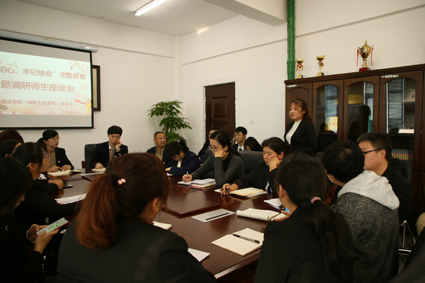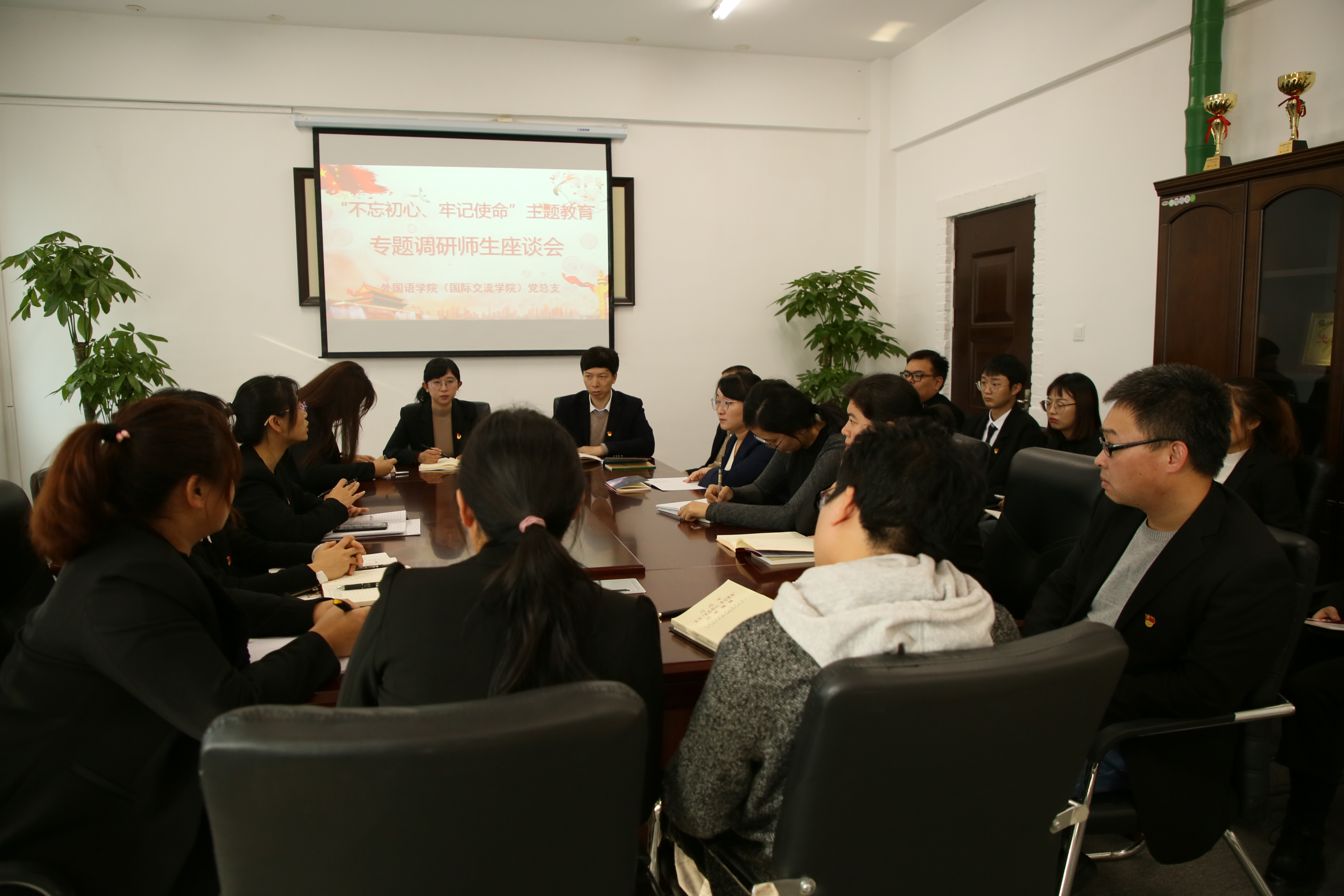 为扎实推进“不忘初心、牢记使命”主题教育,让师生切实感受主题教育成效,根据学校党委《中共6165cc金沙总站检测中心委员会关于在全校开展“不忘初心、牢记使命”主题教育的实施方案》部署要求,外国语学院(国际交流学院)党总支于10月10日下午,在综合实训楼201会议室召开师生座谈会,学院领导班子、各教研室主任、师生党员和学生代表参加本次座谈会。会议由学院党总支副书记孙野主持。