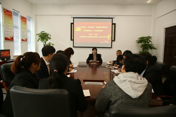 根据“不忘初心、牢记使命”主题教育安排,10月22日下午,在201党团活动室教工党支部书记张昀为外国语学院(国际交流学院)教工党支部全体党员讲授了“坚守教育初心,牢记教师使命”专题党课。