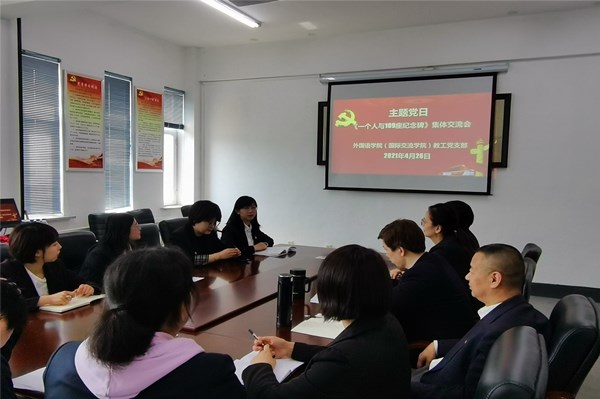 2021年4月26日,外国语学院(国际交流学院)教工党支部在201党团活动室召开2021年4月主题党日活动,会议由教工党支部书记张昀主持。