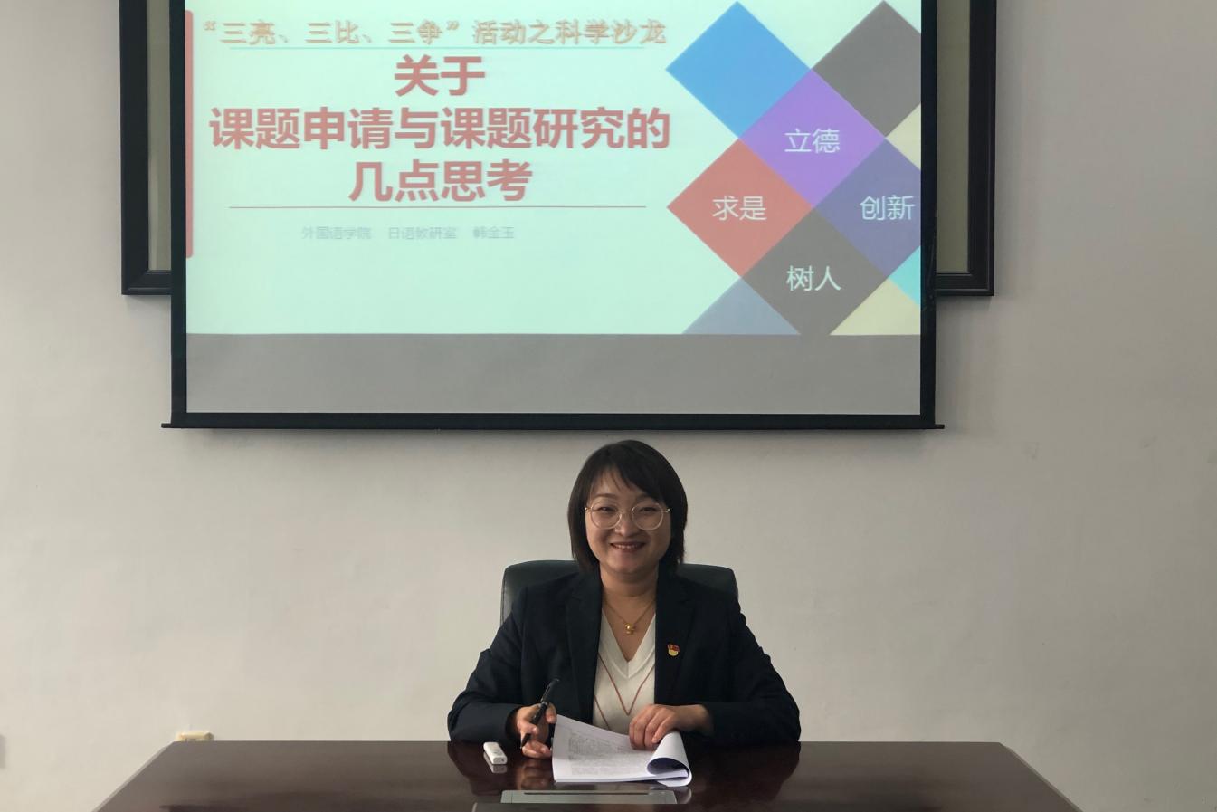 本次科研沙龙由日语专业韩金玉和汉语国际教育专业刘奕兵两位老师结合吉林省教育厅社会科学“十三五”规划课题和吉林省高等教育学会课题的申报经验从合理选题、文献研究、实施方案等三个方面进行分享。