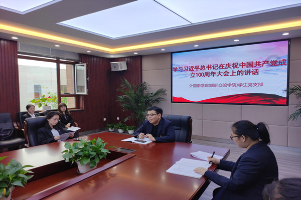 为贯彻上级党组织相关工作部署,7月9日,外国语学院(国际交流学院)学生党支部在教学楼三楼会议室开展7月份主题党日活动,重点学习习近平总书记在庆祝中国共产党成立100周年大会上的重要讲话,切实增强全天党员的思想自觉、政治自觉、行动自觉。