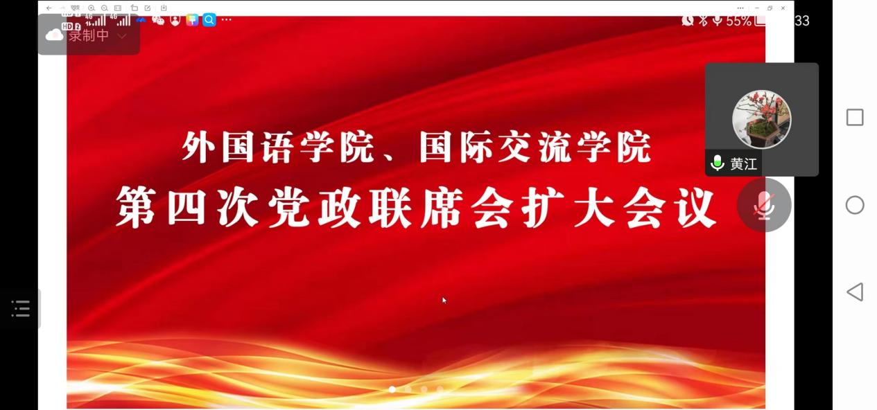 9月18日17时,我院通过腾讯会议召开了第四次党政联席会扩大会议。会议主要围绕近期学校要求的疫情防控、教学工作和学生返校等内容展开。院长黄江、党总支副书记蒋森、副院长王丹及各科室负责人、专业带头人、全体新生辅导员参加了会议。会议由黄江主持。