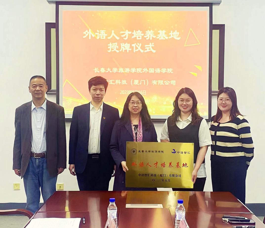 为深度融合校企合作,提高应用型人才培养质量,外国语学院在近日召开了校企交流座谈会,中语智慧科技(厦门)有限公司受邀参加此次会议,并进行了“外语人才培养基地”授牌仪式。院长彭又新、副院长许可新、日语教研室主任鲍永辉和中语智慧科技有限公司代表纪晓颜、郭巧艺参加会议,会议由许可新主持。