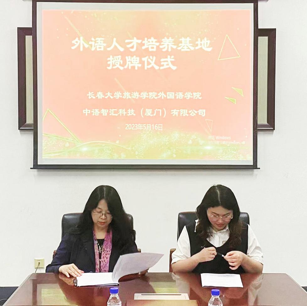 随后,彭又新与中语智慧(厦门)有限公司签订校企合作意向书,并举行外语人才培训基地授牌仪式。